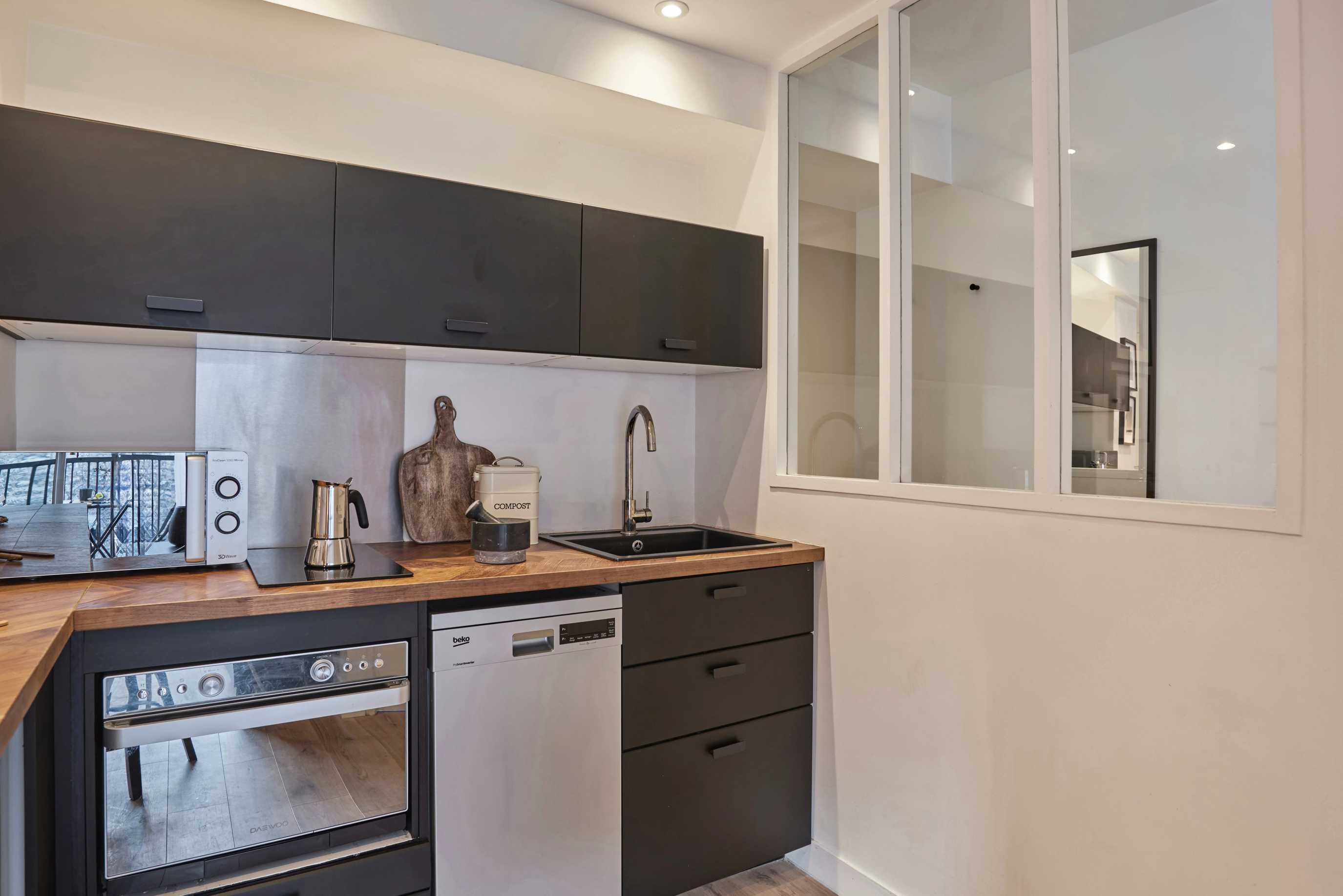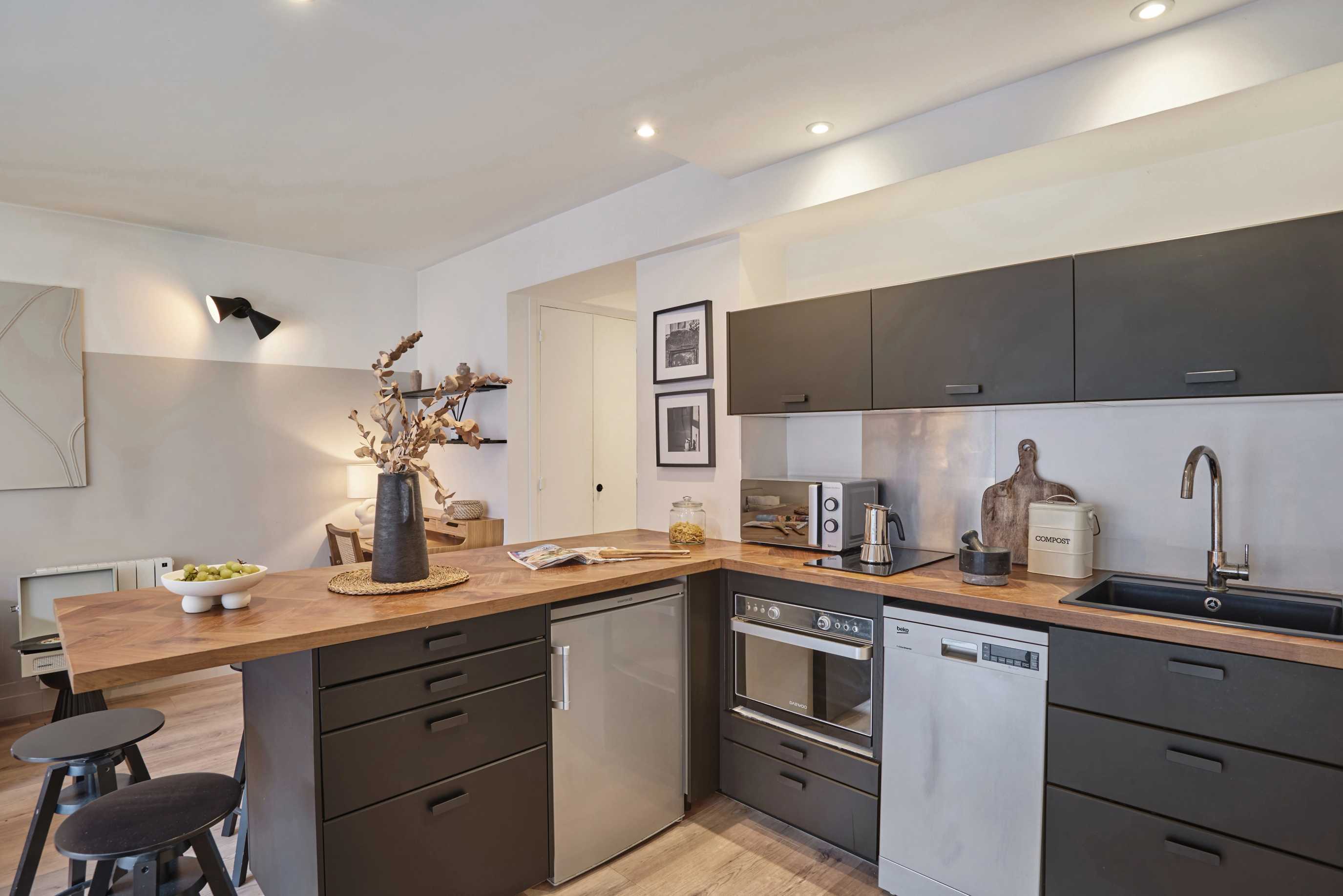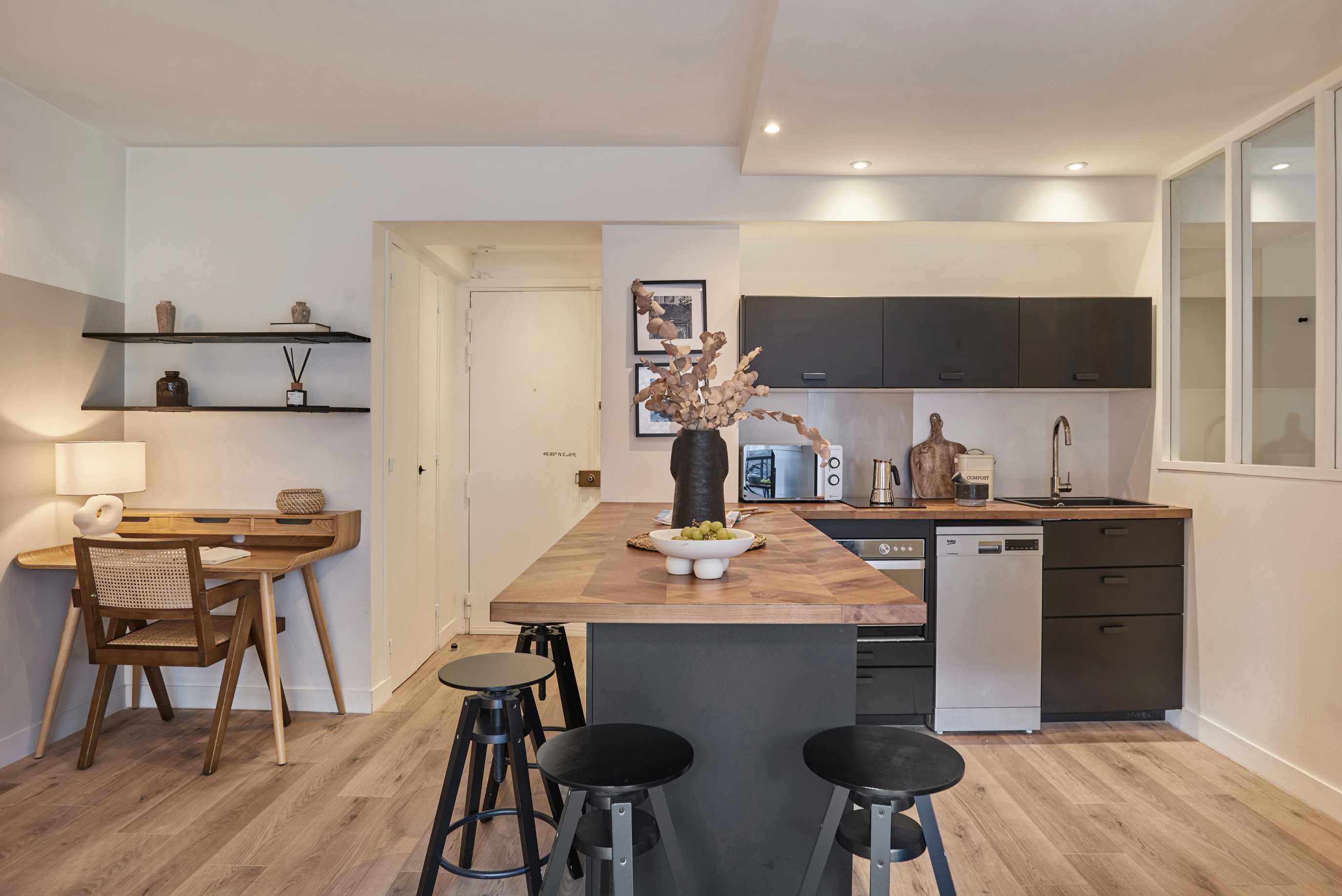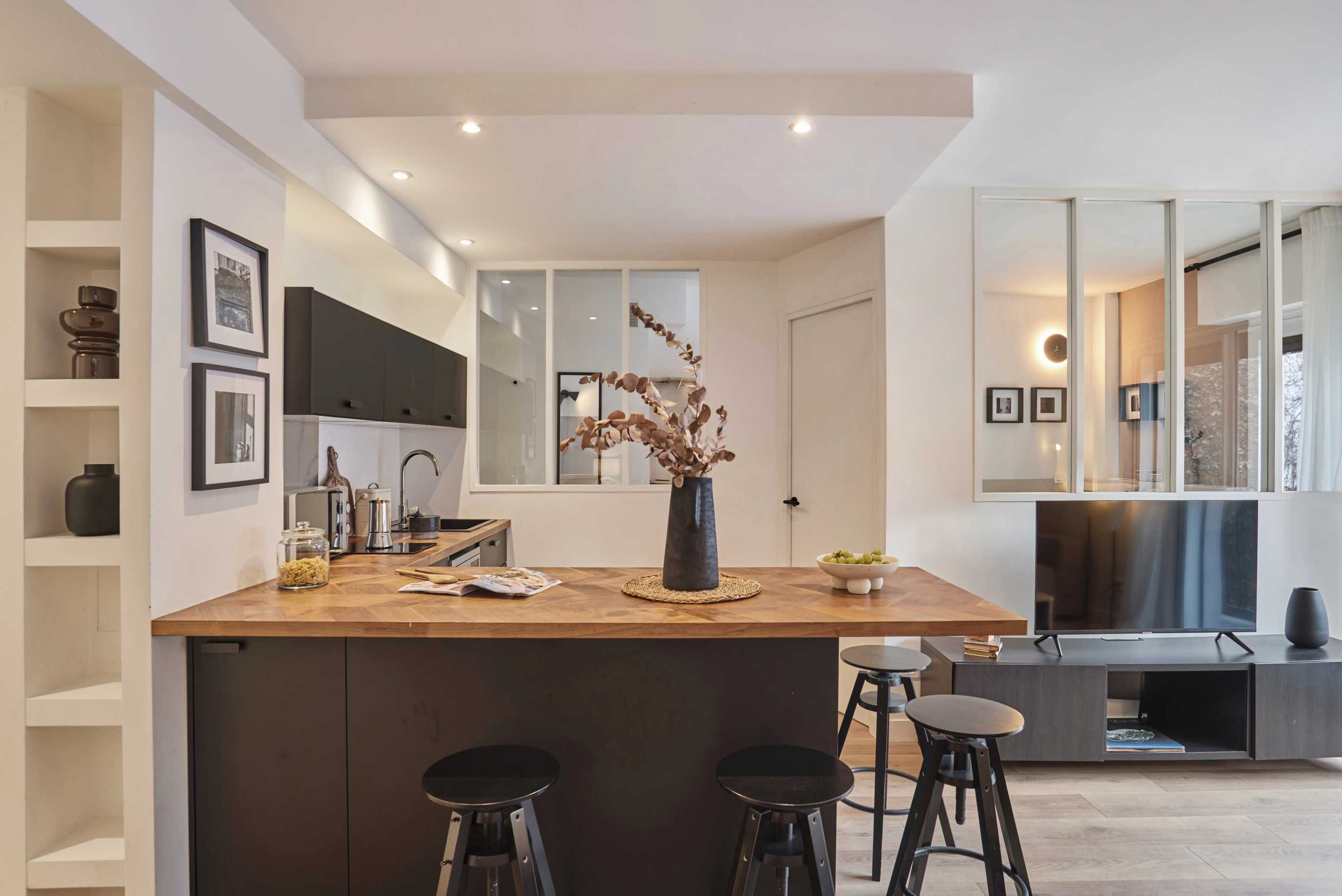 Magnificent renovated and furnished apartment on rue Legendre, in the Épinettes district. Located on the 6th floor with elevator, near Brochant, La Fourche and Rome stations. The Square de Batignolles, Théâtre de l'Européen and Ateliers Berthier are nearby.