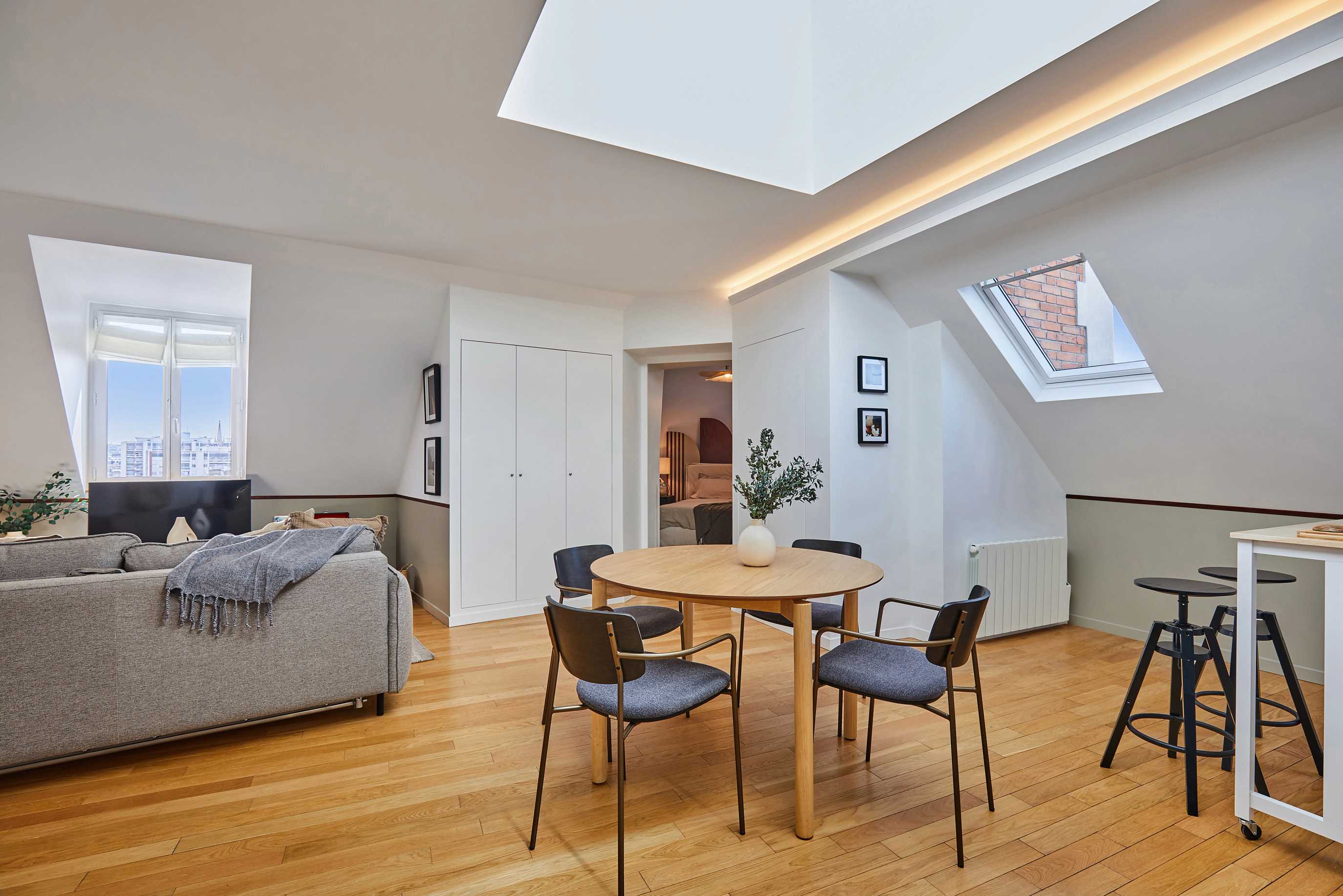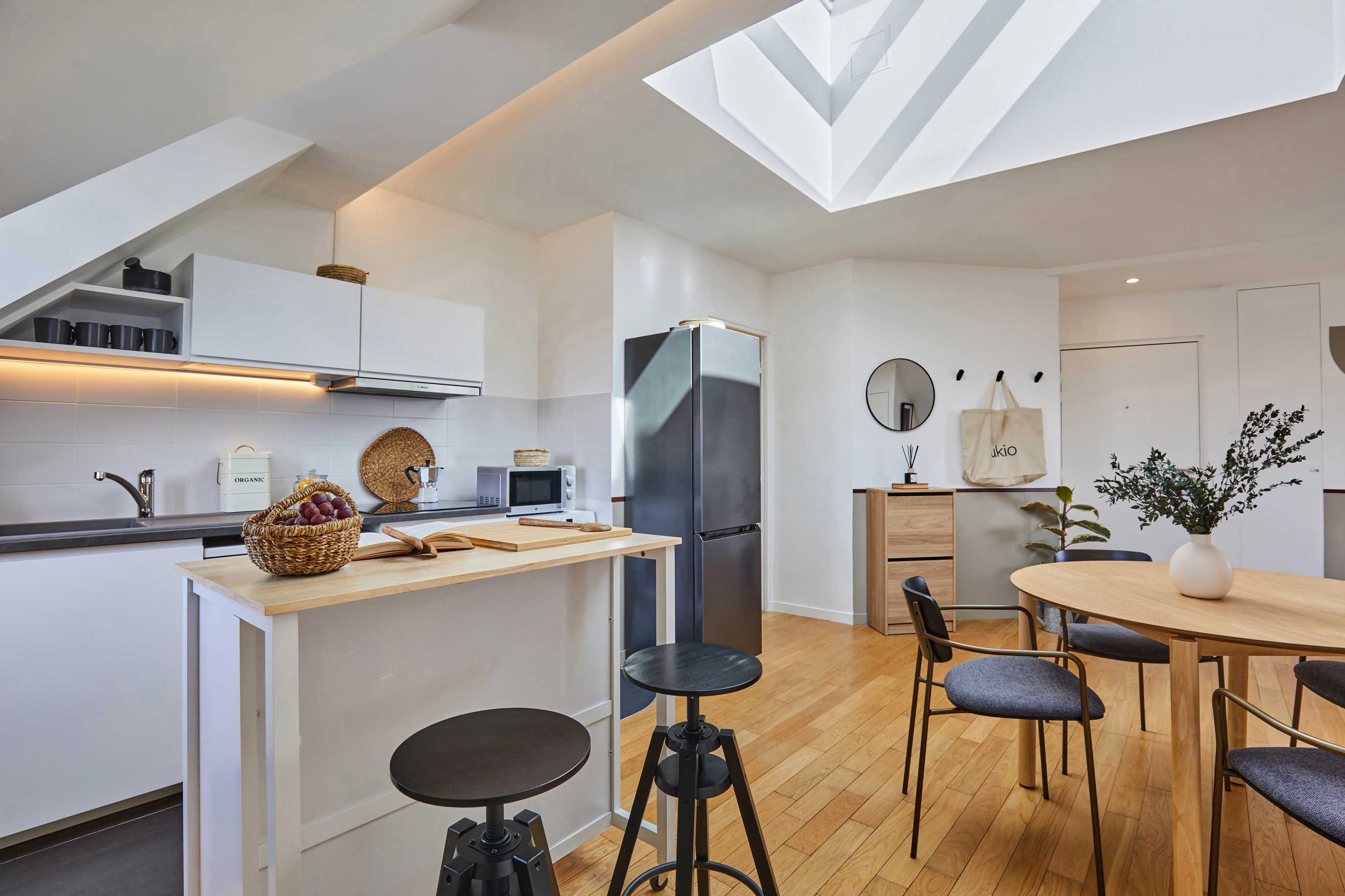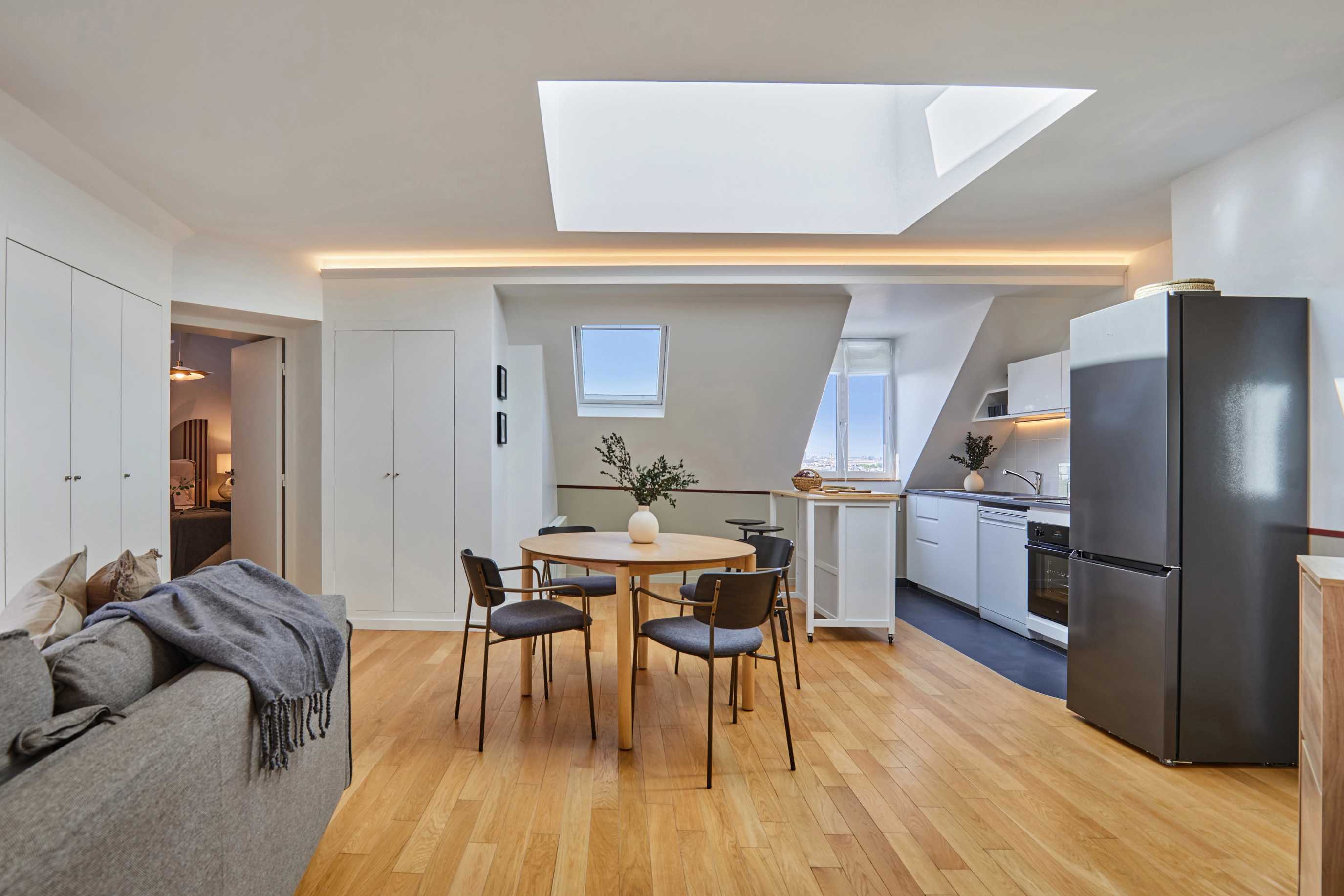 Convenient public transport options include the Arts et Métiers and Temple metro stations. The neighborhood also features the Centre Pompidou, several gyms, and co-working spaces, ensuring a well-rounded living experience.