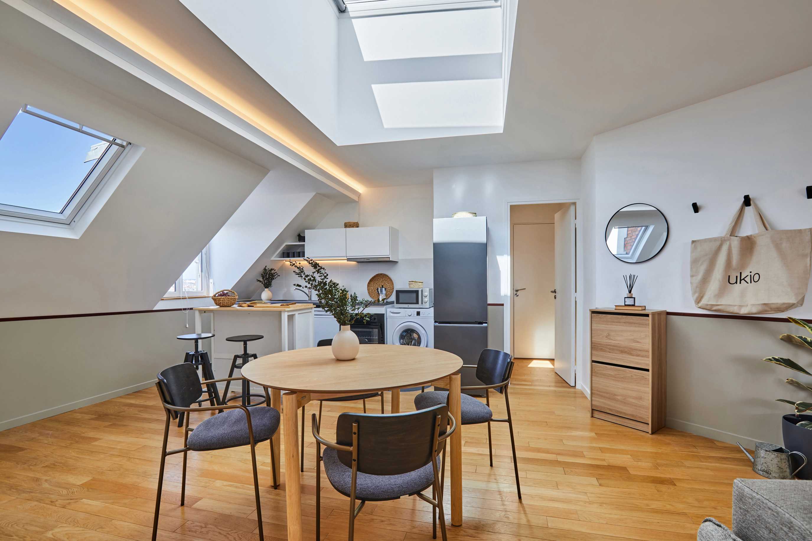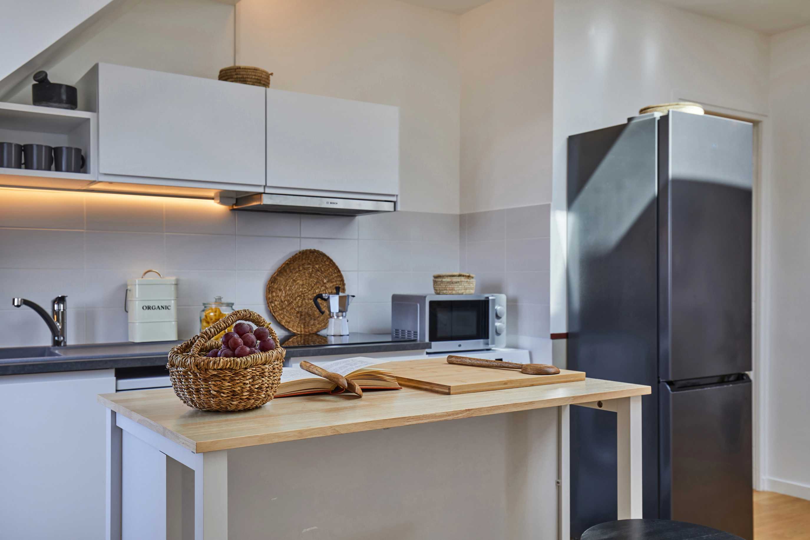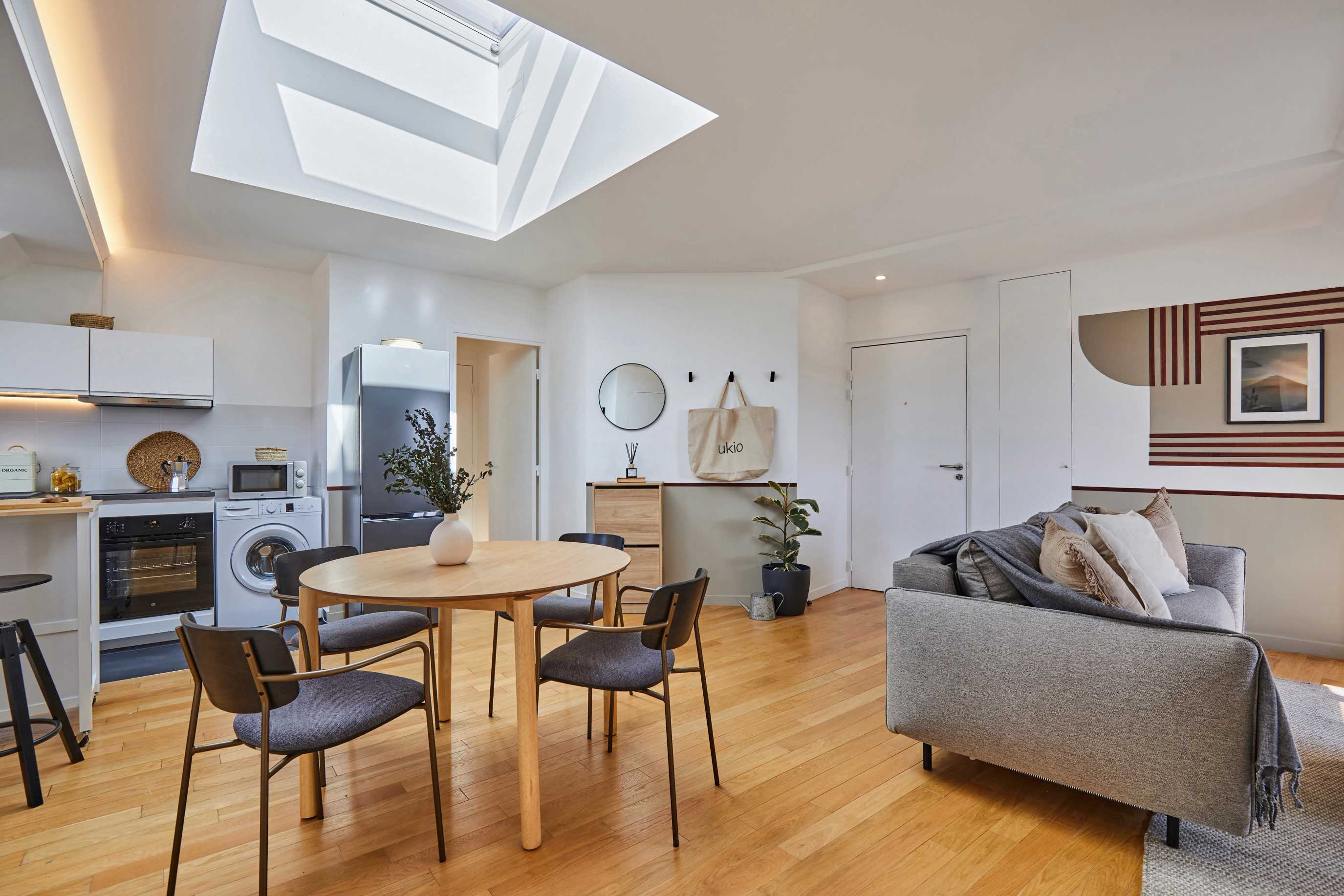 Convenient public transport options include the Arts et Métiers and Temple metro stations. The neighborhood also features the Centre Pompidou, several gyms, and co-working spaces, ensuring a well-rounded living experience.