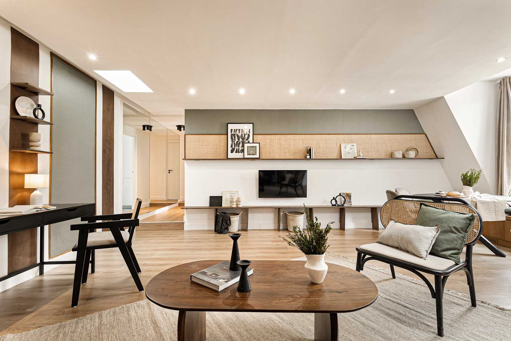 *Nuestro equipo de diseño interno selecciona de forma experta todos los muebles y la decoración de los apartamentos para garantizar el máximo nivel de calidad y comodidad. Como parte del mantenimiento constante de la casa, las mejoras de diseño y la puesta en escena fotográfica, puede haber pequeñas diferencias entre el mobiliario que se ve en las fotos y el que encontrará en el apartamento. Consulte con un agente de ventas para cualquier pregunta o duda.