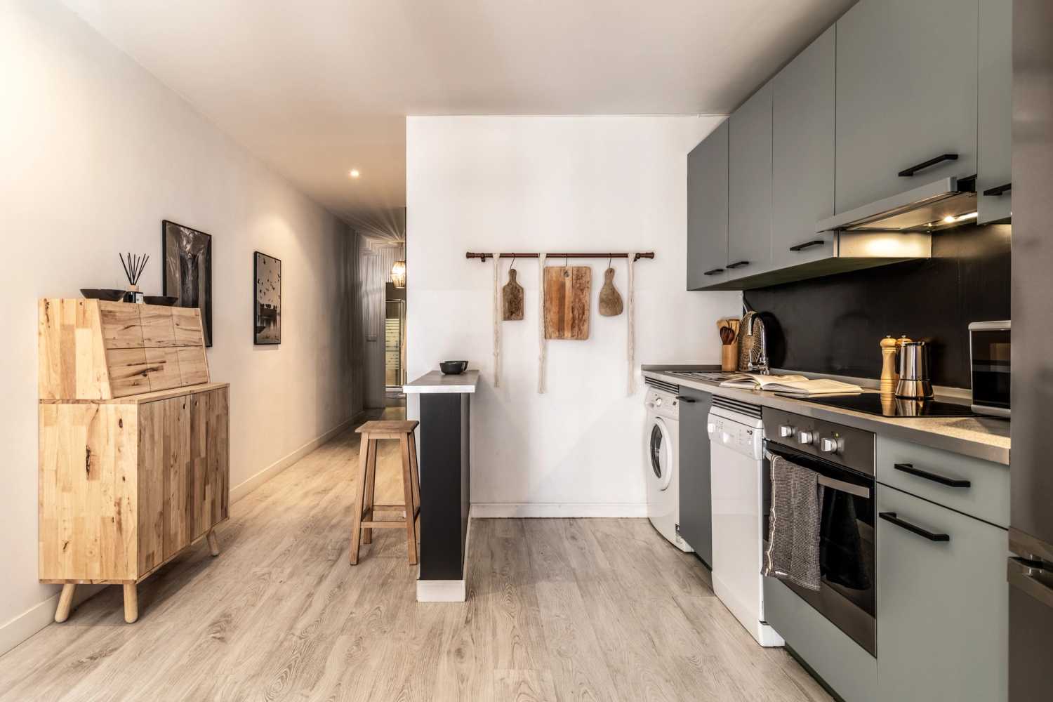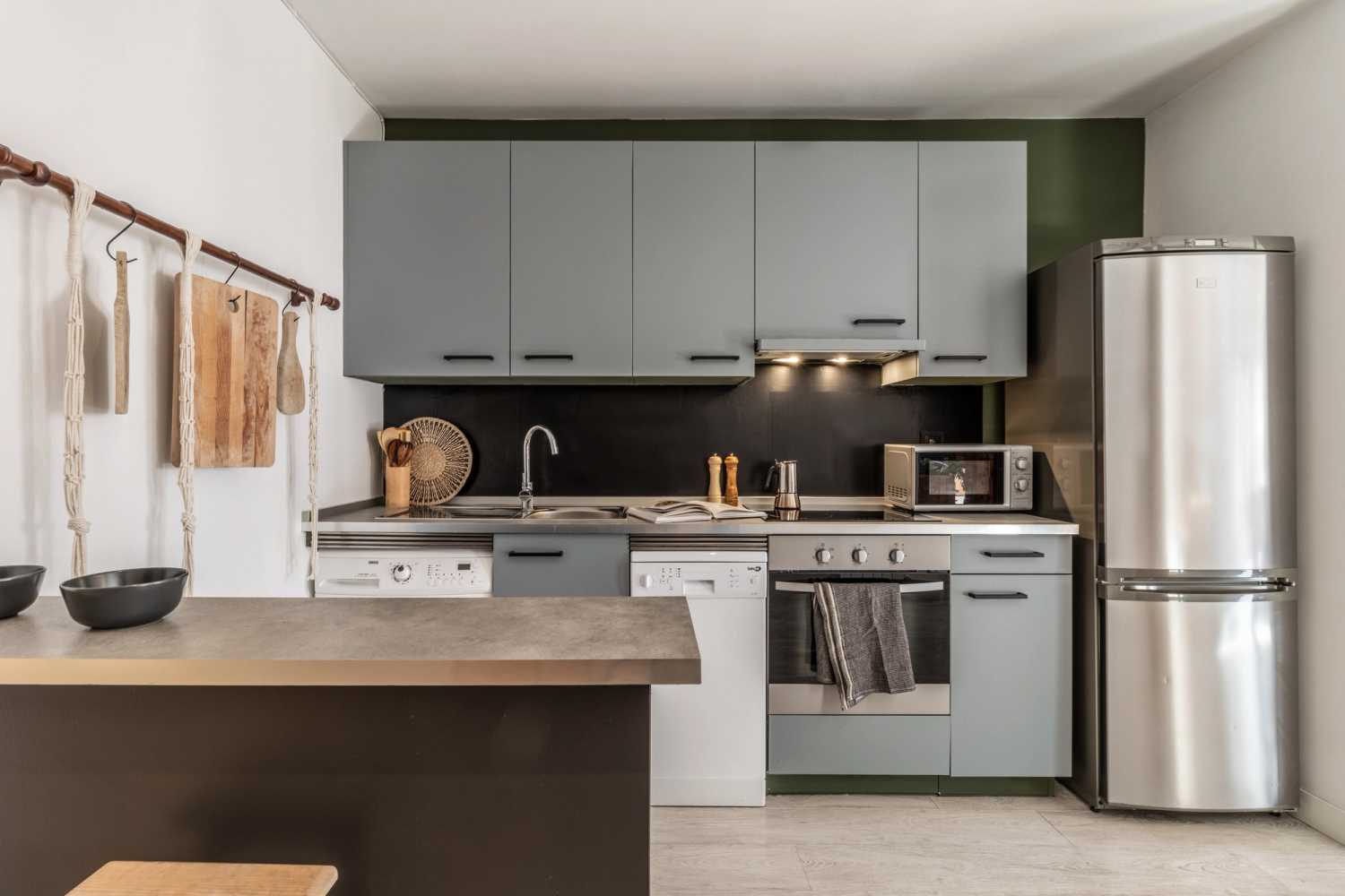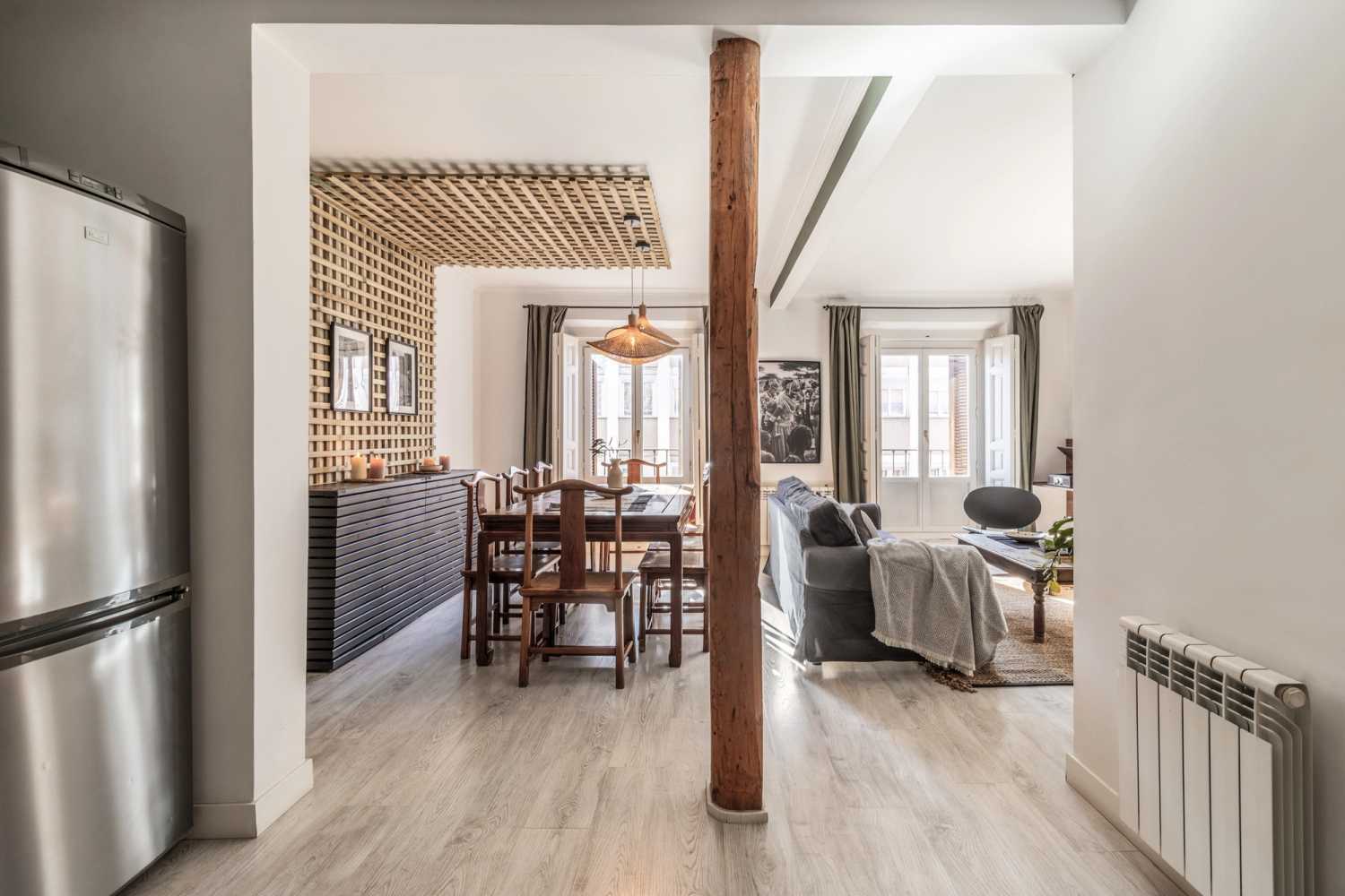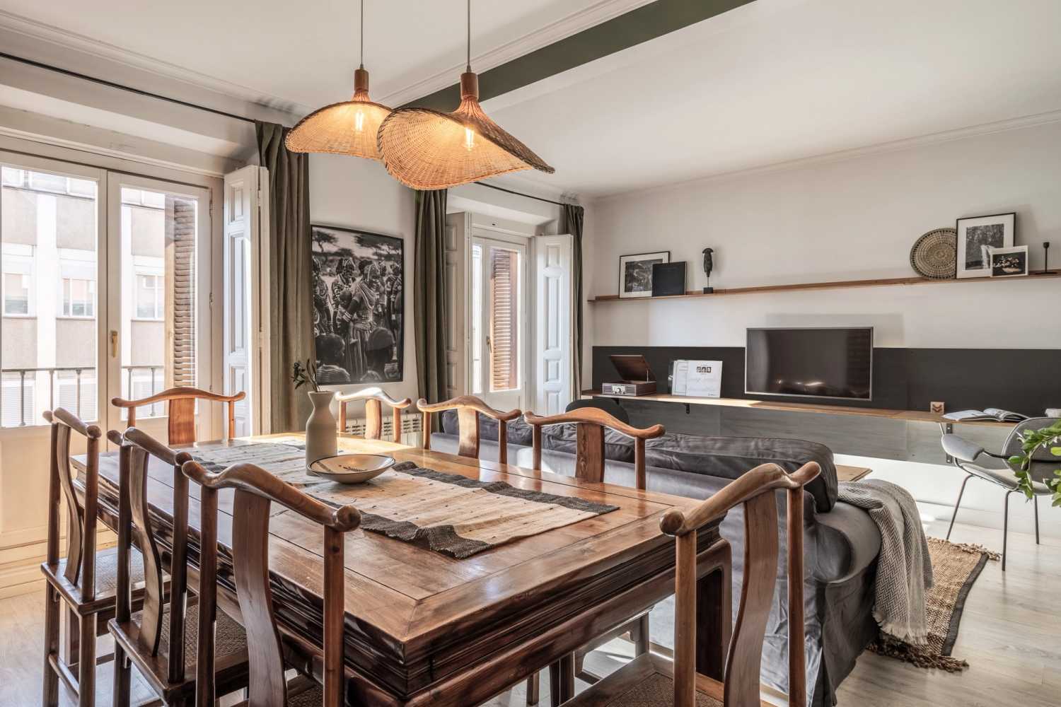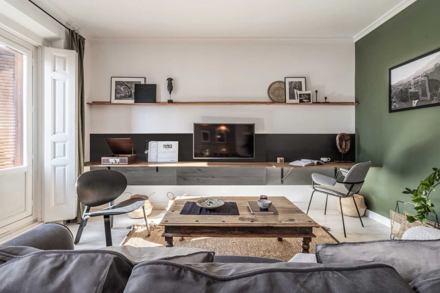 This modern 75 square meter flat located in Madrid's Justicia neighborhood is the perfect place to call home. The wooden details, green tones, and vibrant plants add a unique flare to this modern flat.