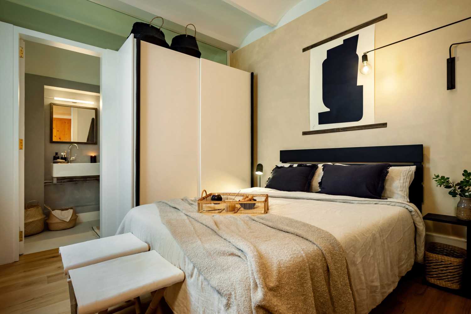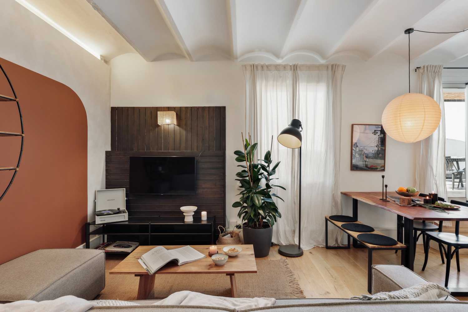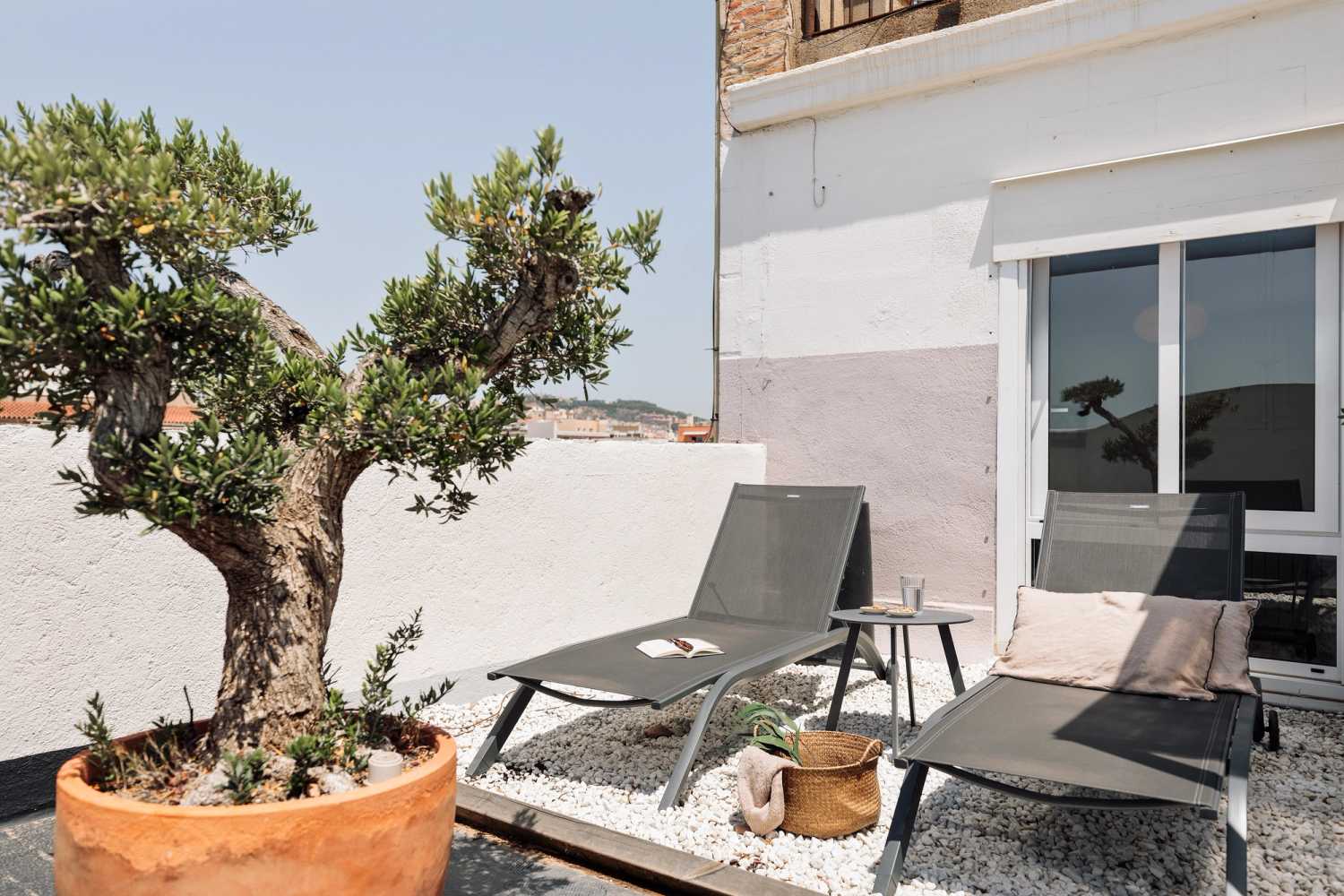 A rare find in the city of Barcelona, Fuji is a grandiose penthouse with a sprawling 57 square meter terrace with a view of the entire city. The 130 square meter apartment, flooded with natural light, has 2 bedrooms and 2 baths. The highlight of Fuji is the spacious terrace, which is fitted with an outdoor dining area covered by a bamboo pergola and two sun loungers.