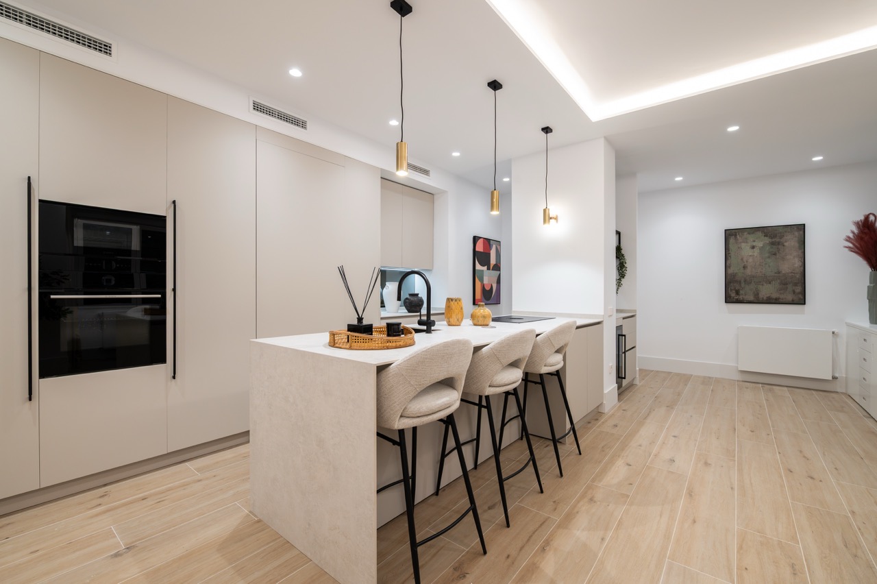 Renovated by our team of interior designers, the apartment combines clean architectural lines with a contemporary layout, ducted heating and cooling with room control, an elevator in the building, and a calm exterior orientation. A solid opportunity for those seeking space, comfort, and a prime Madrid address.