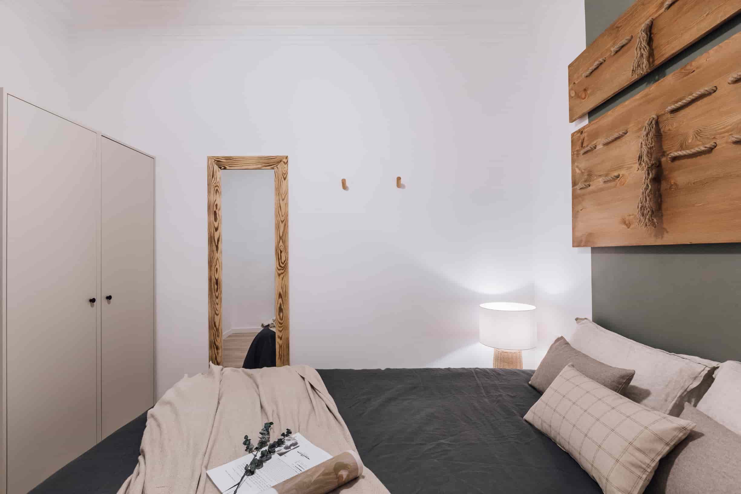 Offering 80 sqm of interior space plus 5 sqm of exterior, it features two bedrooms and one bathroom. The apartment has been renovated by our team of interior designers and includes air conditioning and gas radiator heating, ensuring comfort throughout the year.